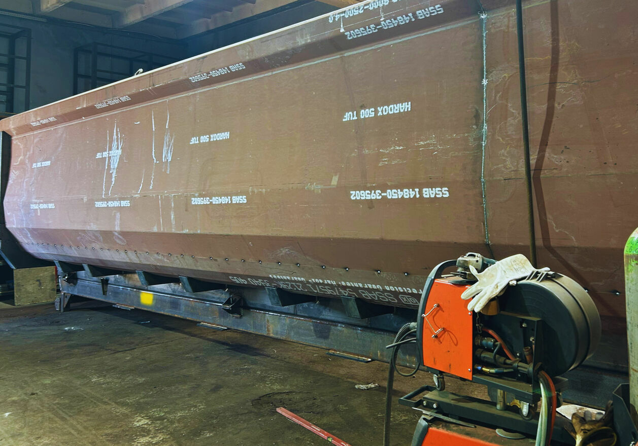 Mulda ściany przesuwnej 50 ma 3 wykonanej ze stali Hardox 500 TUF podłoga 5 mm , ściana 4 mm